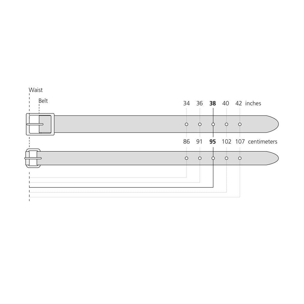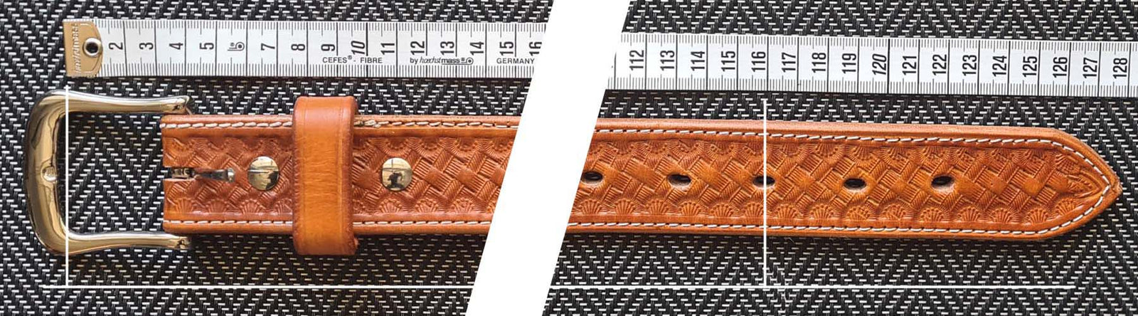 Lay your belt on a flat surface. Measure the distance from the most used hole in the belt to the belt buckle on the pin side. This is your waist measurement. The middle hole in the belt will correspond with this measurement, allowing changes of 2 inches/5 centimeters in a five-hole belt.